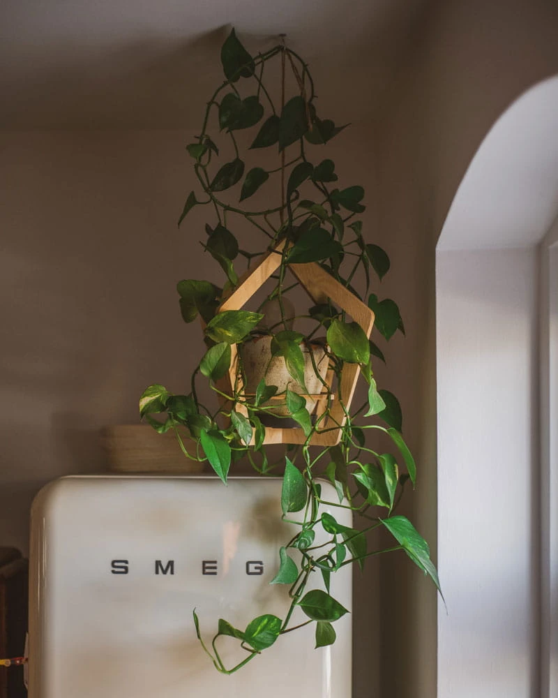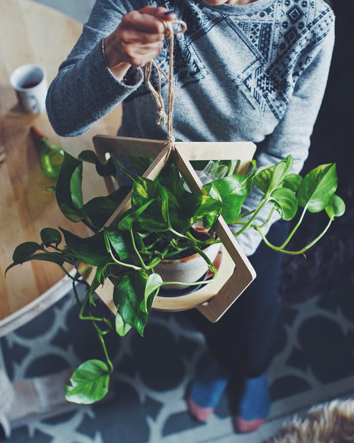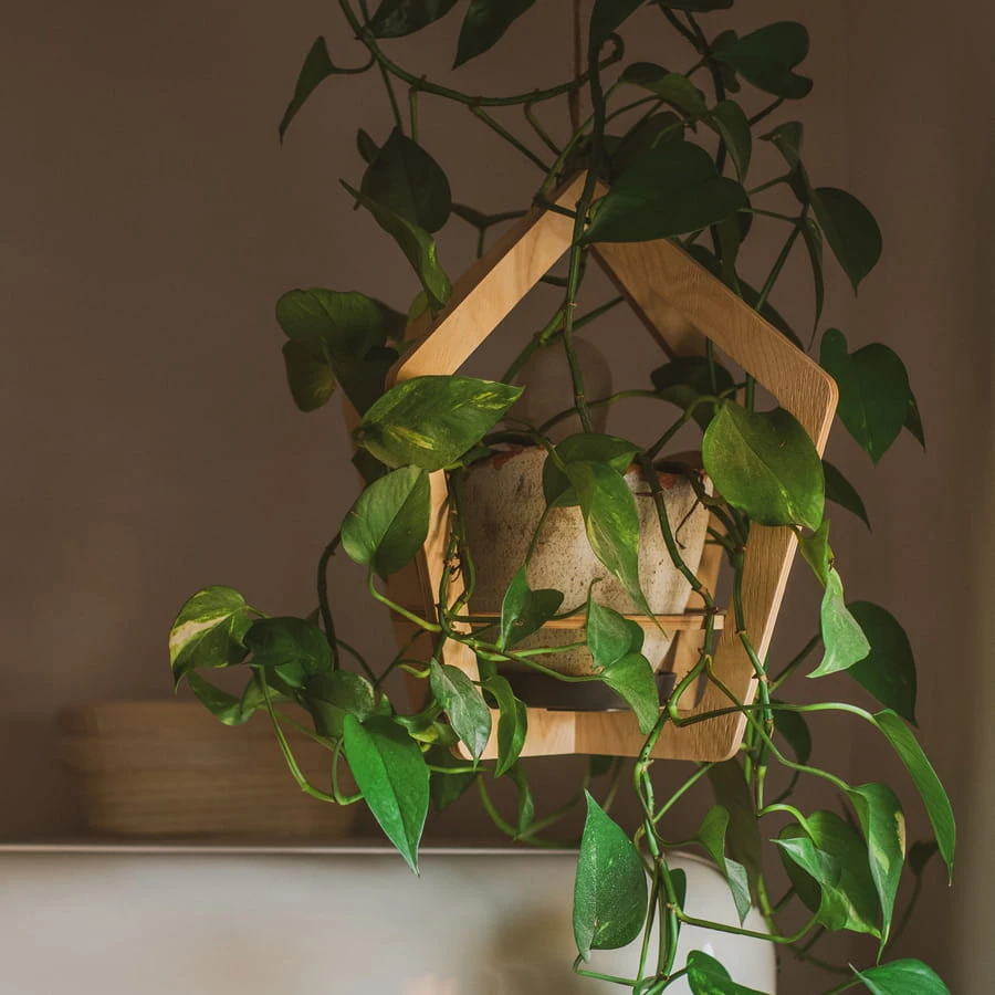 Blumenampel aus unbehandeltem Sperrholz, Schnur inklusive.