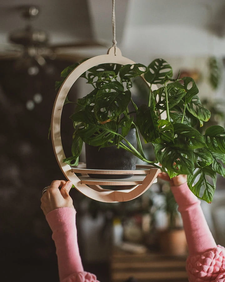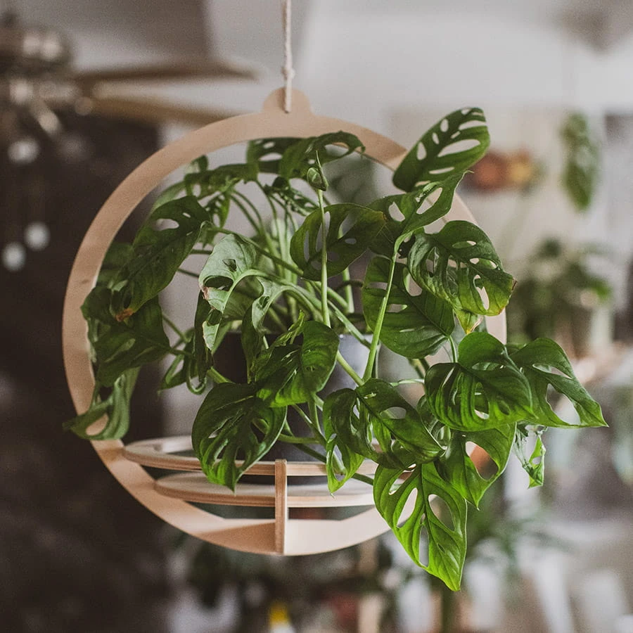 Blumenampel aus unbehandeltem Sperrholz, Schnur inklusive.