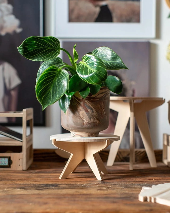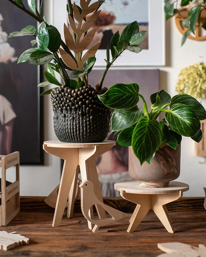 Ständer aus unbehandeltem Sperrholz.