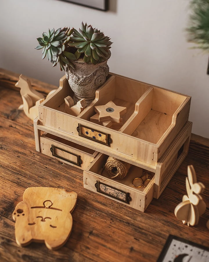 Szufladka idealna do organizacji Twojej przestrzeni. Została starannie zaprojektowana z myślą o funkcjonalności i stylu. Wykonana ze sklejki gwarantuje długotrwałe użytkowanie i utrzymanie eleganckiego wyglądu. Dostępna w dwóch rozmiarach. Ułatwi przechowywanie drobiazgów, biżuterii, gadżetów czy dokumentów. Zapomnij o nieładzie i ciesz się uporządkowaną przestrzenią dzięki naszej funkcjonalnej szufladce.