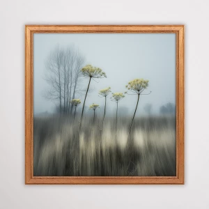 Tego typu plakaty botaniczne doskonale sprawdzają się w przestrzeniach, które mają służyć wyciszeniu i koncentracji, takich jak domowe biuro, gabinet czy przedpokój. Pionowy układ kompozycji optycznie podwyższa wnętrze, a motyw mgły dodaje mu pożądanej w nowoczesnym designie „powietrzności”. Choć motyw traw wydaje się prosty, to właśnie w jego skromności tkwi największa siła – ta ozdoba ścienna nie narzuca się, lecz dyskretnie podkreśla charakter pomieszczenia i dobry gust właściciela.