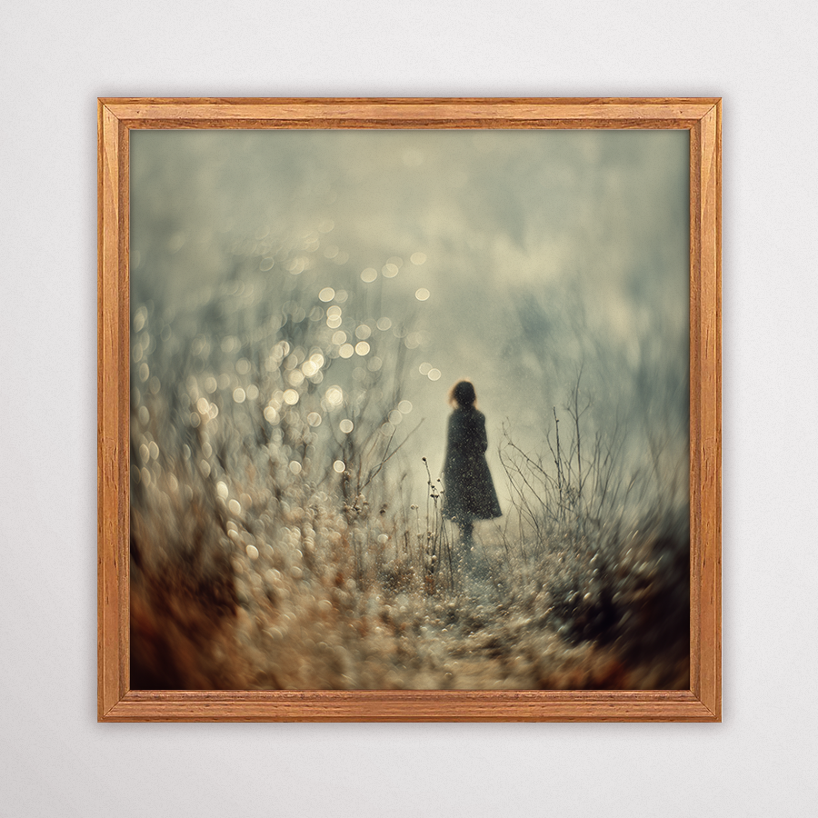 Jasny Świt to plakat, który balansuje na granicy rzeczywistości i snu. Ta niezwykle nastrojowa fotografia artystyczna przedstawia postać stojącą w sercu gęstej mgły, otoczoną przez tysiące świetlistych drobinek i miękkich kręgów światła (bokeh). To grafika na ścianę, która ma w sobie coś z magii i poezji, wprowadzając do wnętrza aurę tajemniczości i niezwykłego spokoju. Jeśli szukasz dekoracji, która ma duszę i potrafi całkowicie odmienić charakter pomieszczenia, ten nastrojowy plakat jest idealnym wyborem.