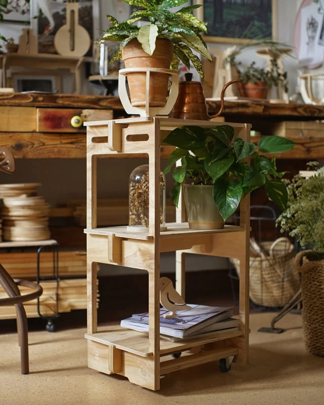 Jeździk-pomocnik na kółkach wykonany ze sklejki.