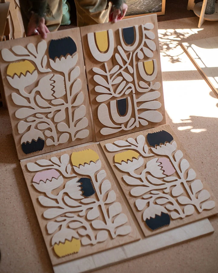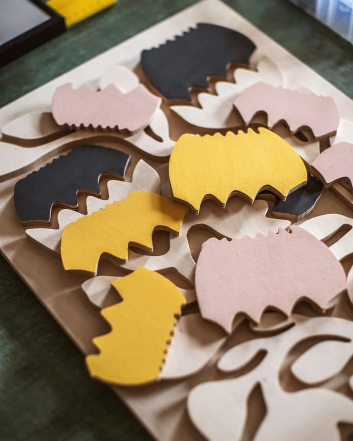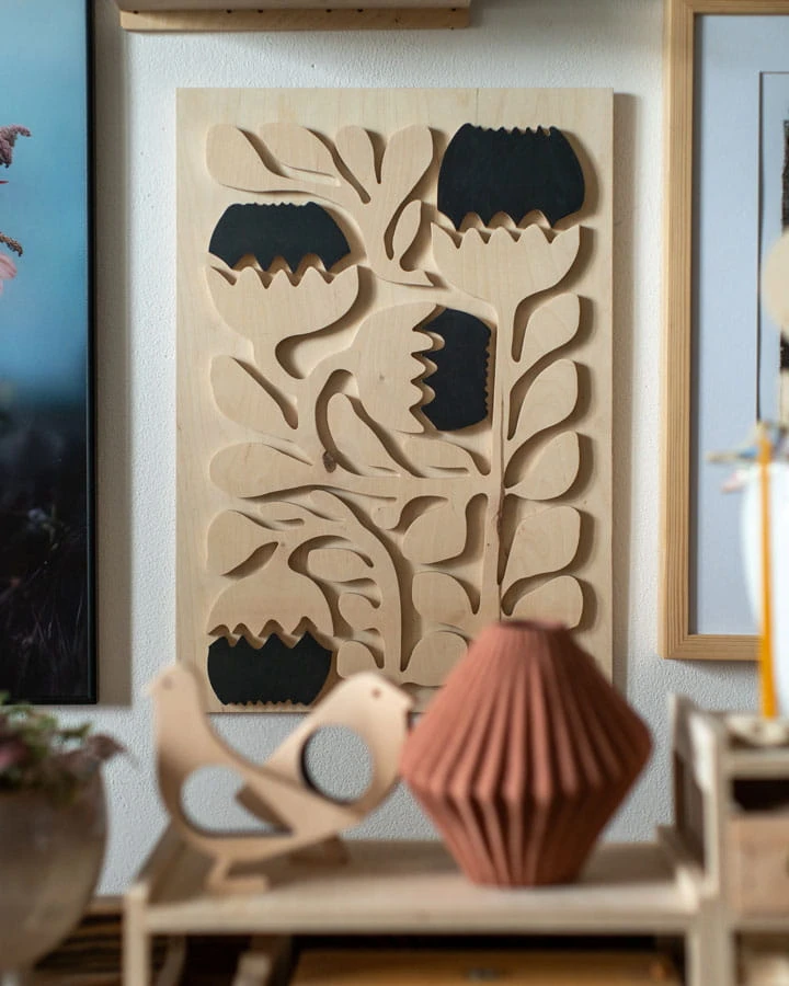 Przestrzenny obraz ze sklejki. Obraz stworzony jest z wyjątkowych kawałków sklejki, którą zbieramy miesiącami by móc później stworzyć unikatowe twory. Każdy egzemplarz jest inny, wyjątkowy. Posiada inną strukturę i rysunek drewna.