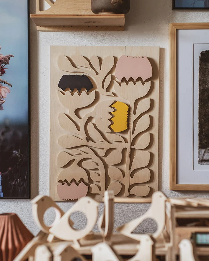 kwiaty I - drewniany obraz przestrzenny