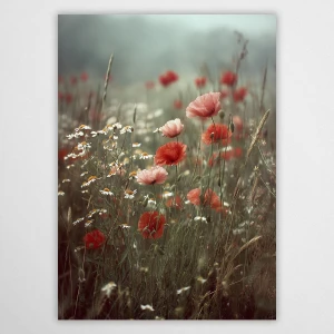 Plakat z kwiatami „Szepty Polne IV” to sentymentalna podróż na letnią łąkę, łącząca ponadczasowe piękno czerwonych maków z delikatnością białych stokrotek. Grafika została utrzymana w stonowanej stylistyce vintage, dzięki czemu kolory są nasycone, ale elegancko przygaszone. Ten sielski plakat botaniczny to doskonały sposób na wprowadzenie rustykalnego uroku do współczesnej kuchni, jadalni czy przedpokoju. Stylistyka retro sprawia, że obraz wygląda szlachetnie i pasuje zarówno do wnętrz typu farmhouse, jak i eklektycznych, loftowych przestrzeni.