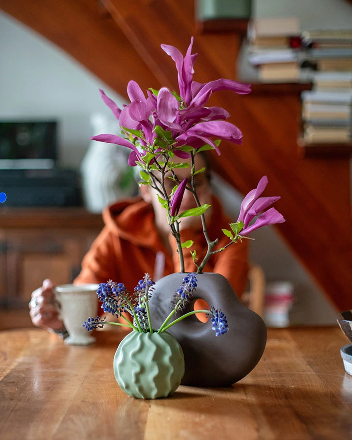 Ceramiczna powierzchnia wazonu jest matowa i ma głęboki, czekoladowy odcień, który nadaje mu elegancji i subtelnej wyrafinowanej prostoty. Dzięki temu doskonale komponuje się zarówno z jasnymi, jak i ciemnymi wnętrzami, wprowadzając do przestrzeni ciepło i nowoczesność.